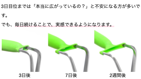そのため、キトー君の使用時間は短時間から始め、徐々に延ばすのが理想です。例えば、最初は1〜2時間、翌日以降に少しずつ延長する方法です。段階的に行うことで痛みや炎症のリスクを下げ、効果的な矯正を実現できます。