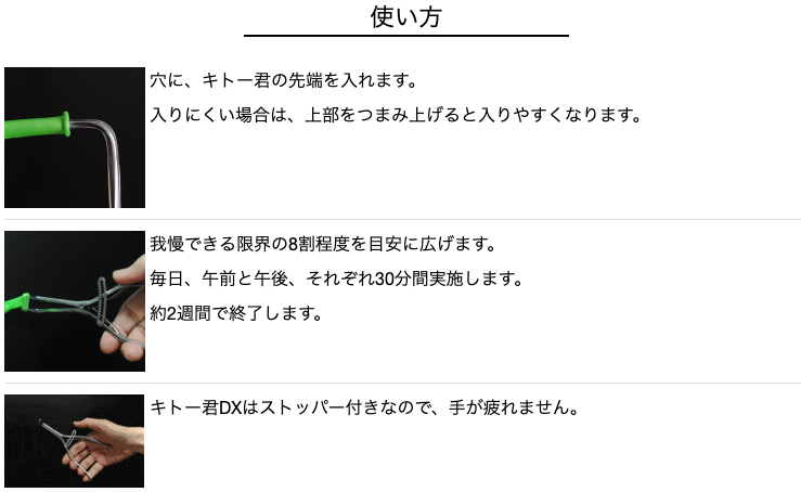 キトー君は、一度に強い力をかけるのではなく、段階的に圧を調整できる点が特徴です。